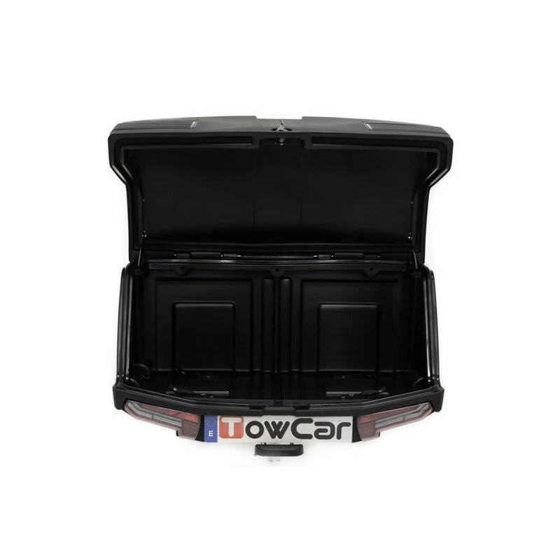 Son grand avantage est que vous pouvez le rabattre pour accéder au coffre du véhicule grâce à une poignée qui actionne son inclinaison. Ce produit est également équipé d’un système de fermeture à clé pour sécuriser vos objets, de feux LED avec clignotants progressifs dynamiques et des roues intégrées pour un transport facile lorsque la TowBox doit être déplacée manuellement.