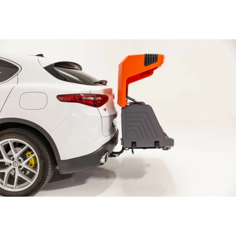 Son grand avantage est que vous pouvez le rabattre pour accéder au coffre du véhicule grâce à une poignée qui actionne son inclinaison. Ce produit est également équipé d’un système de fermeture à clé pour sécuriser vos objets, de feux LED avec clignotants progressifs dynamiques et des roues intégrées pour un transport facile lorsque la TowBox doit être déplacée manuellement.