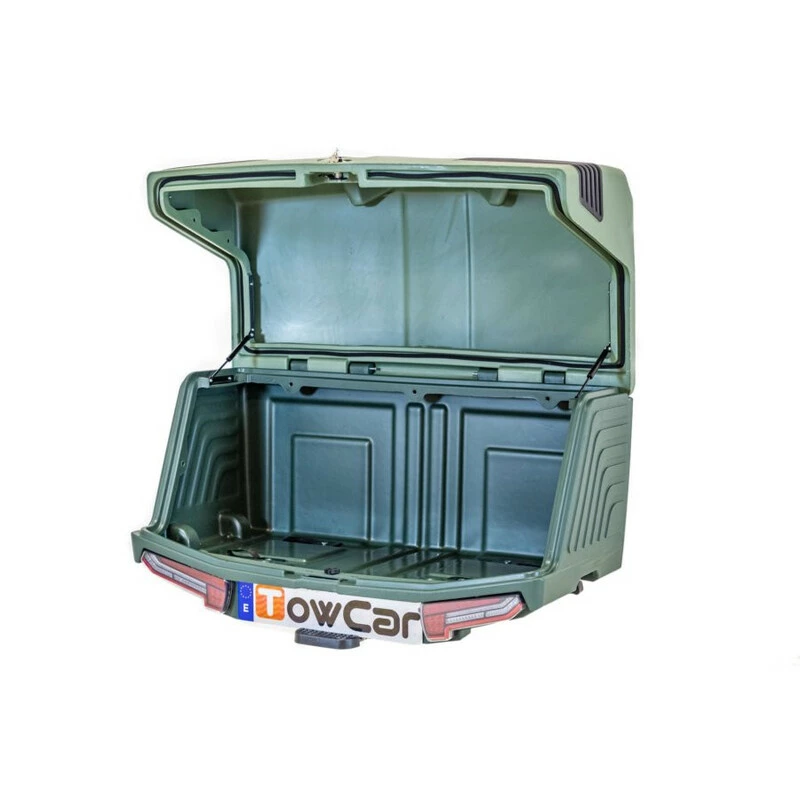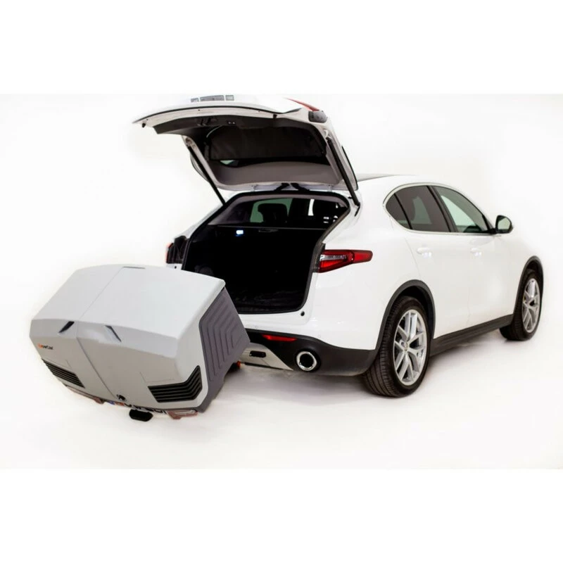 Son grand avantage est que vous pouvez le rabattre pour accéder au coffre du véhicule grâce à une poignée qui actionne son inclinaison. Ce produit est également équipé d’un système de fermeture à clé pour sécuriser vos objets, de feux LED avec clignotants progressifs dynamiques et des roues intégrées pour un transport facile lorsque la TowBox doit être déplacée manuellement.