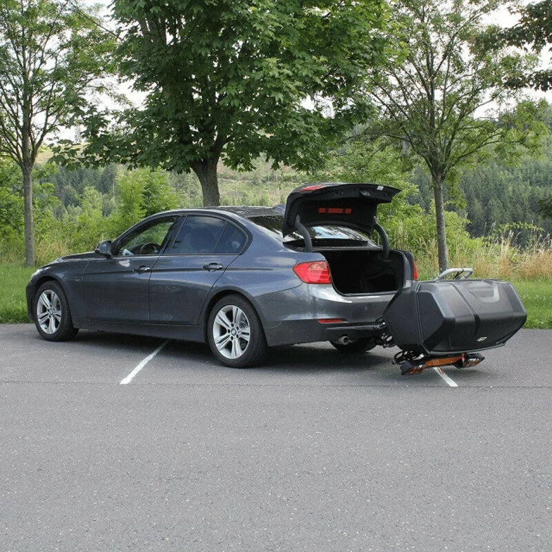Le coffre GP est une solution de rangement supplémentaire. La fonction basculante du porte-vélos sur lequel est installé le coffre permet d’avoir accès au coffre du véhicule en toute circonstance même quand le coffre est installé sur le porte-vélos. Le coffre est également verrouillable.