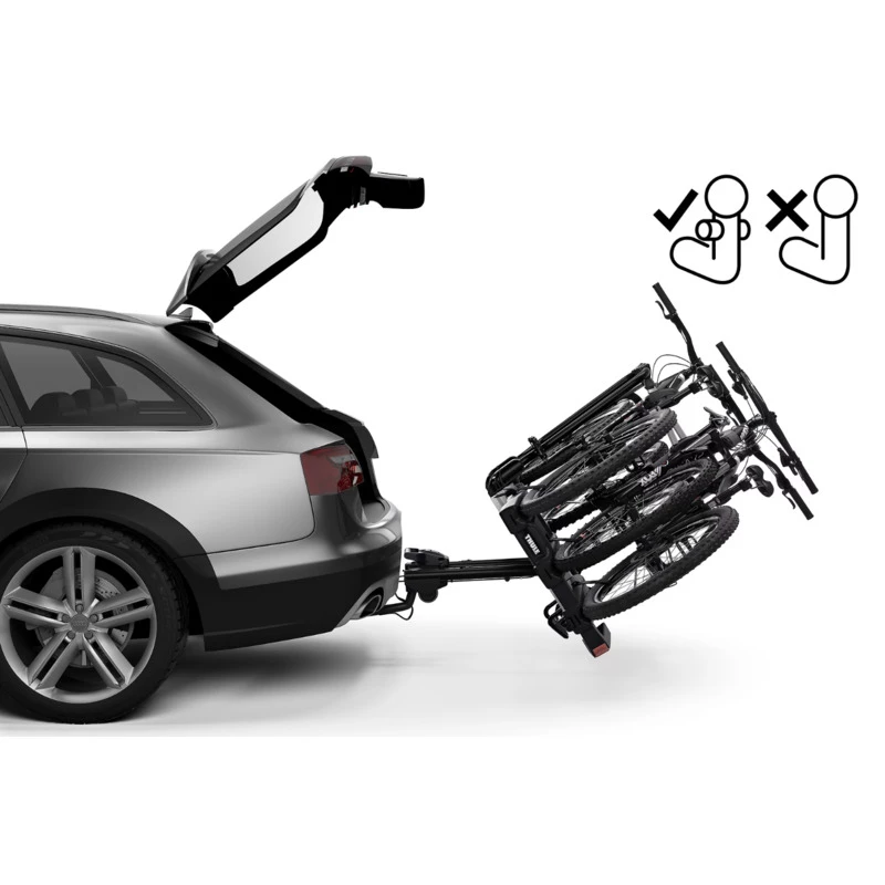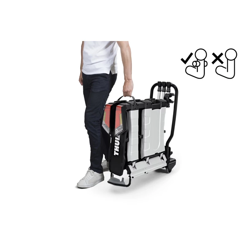 Le Thule EasyFold XT F peut transporter 3 vélos d’une charge totale de 66 kg, ce qui le rend compatible avec le transport de vélos électriques et de Fatbikes !